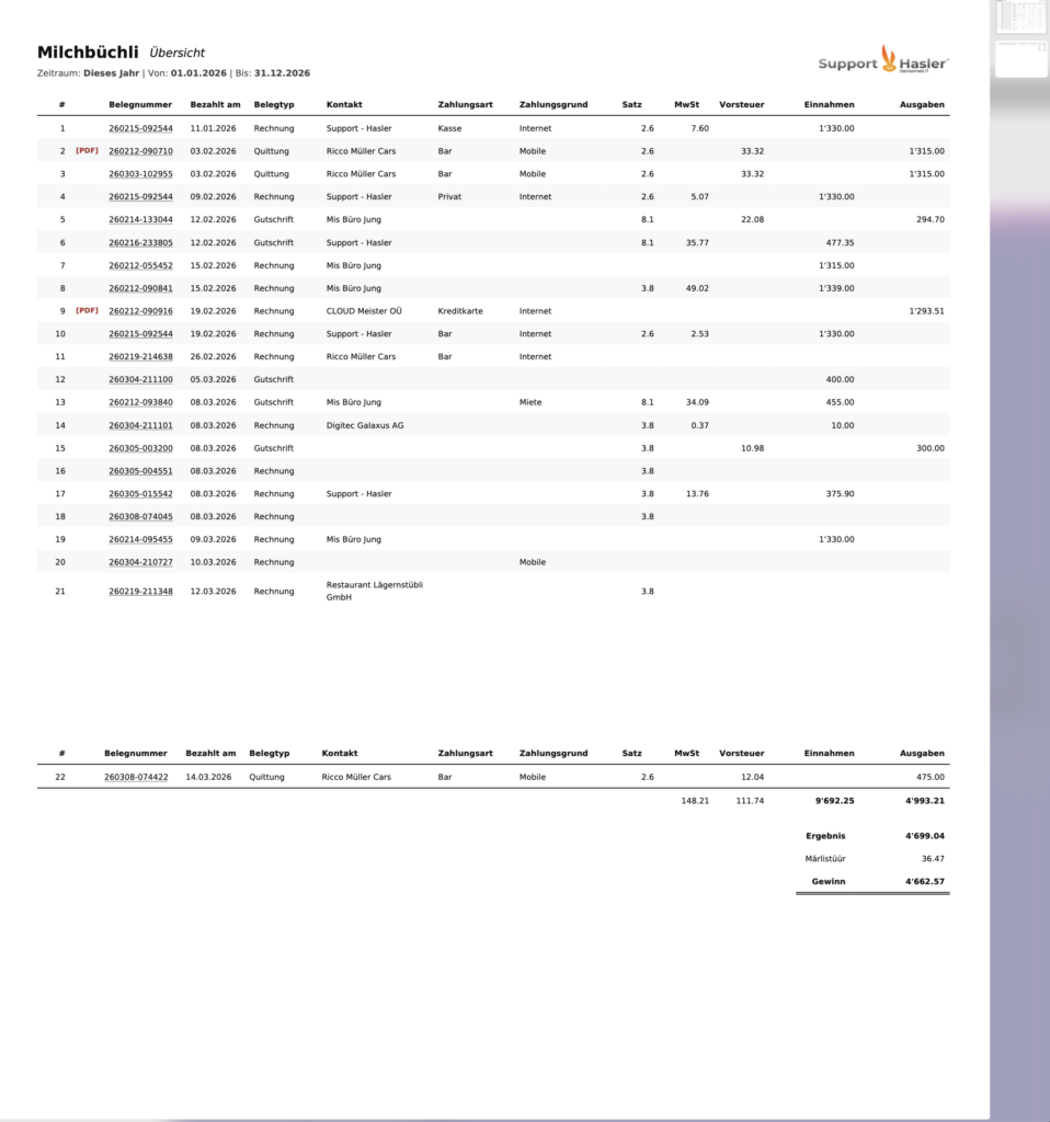 | MWST-Abrechnung | teilweise | Ja |
