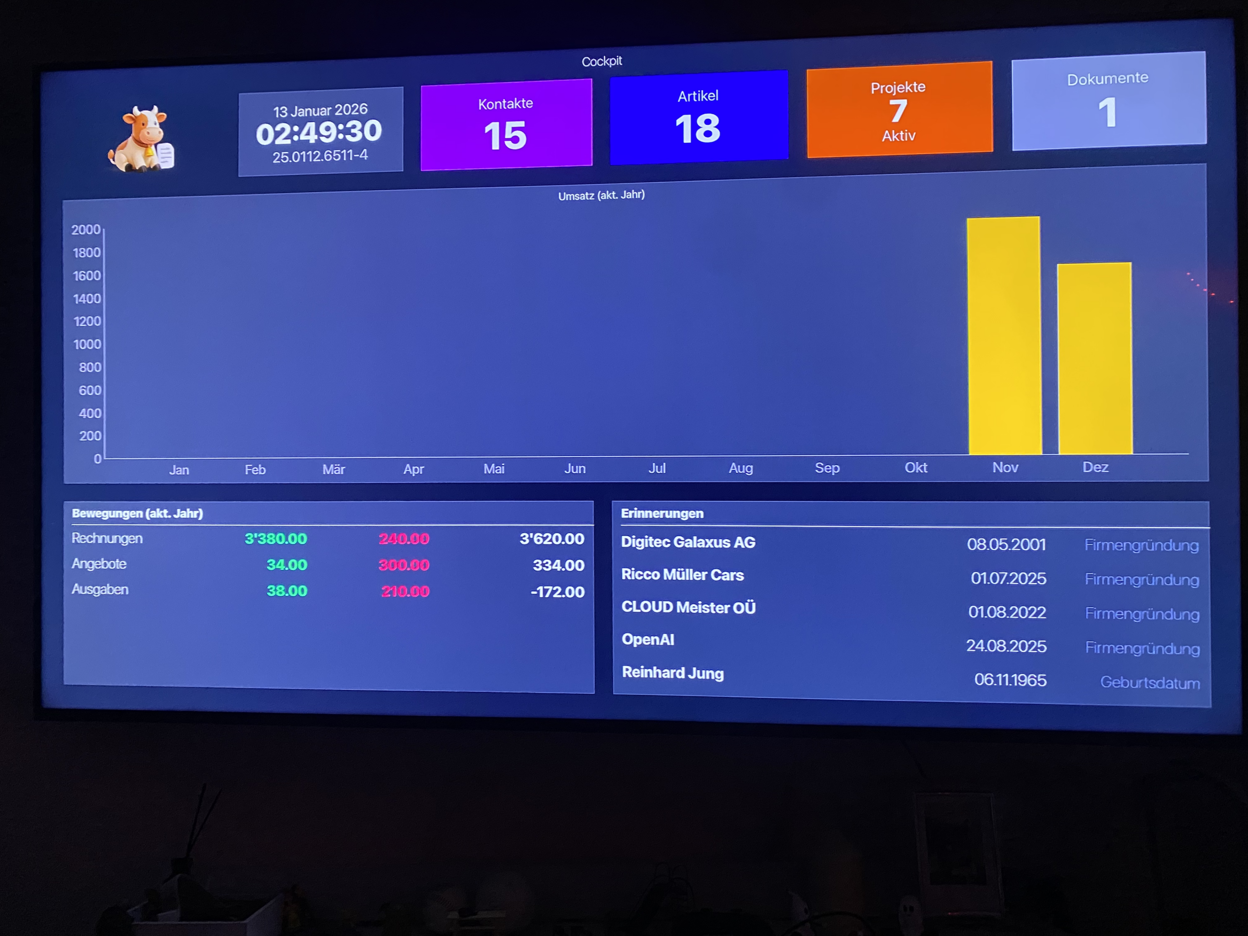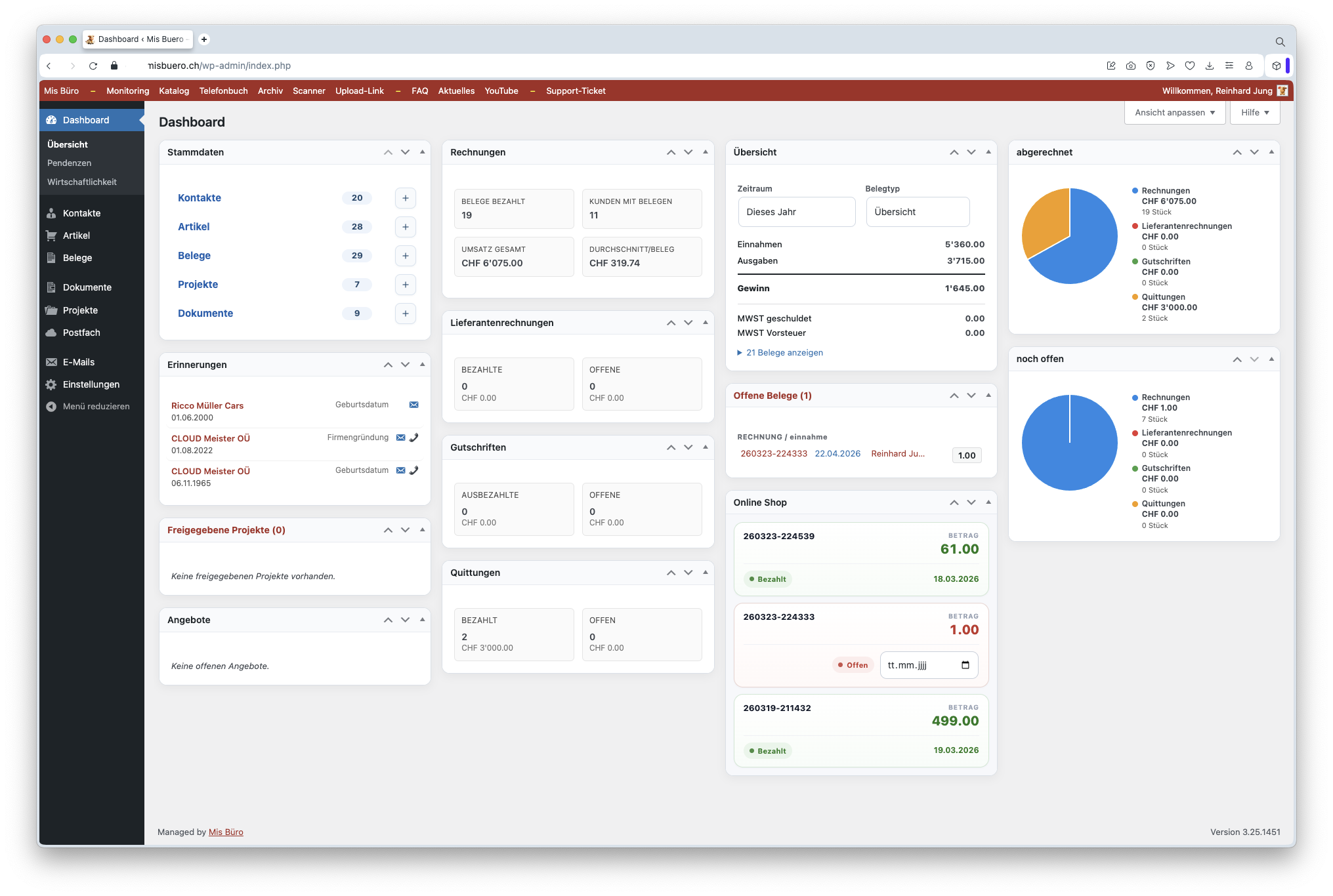 So sieht Dein Dashboard im Alltag aus. Alle wichtigen Zahlen, Rechnungen und offenen Beträge auf einen Blick.