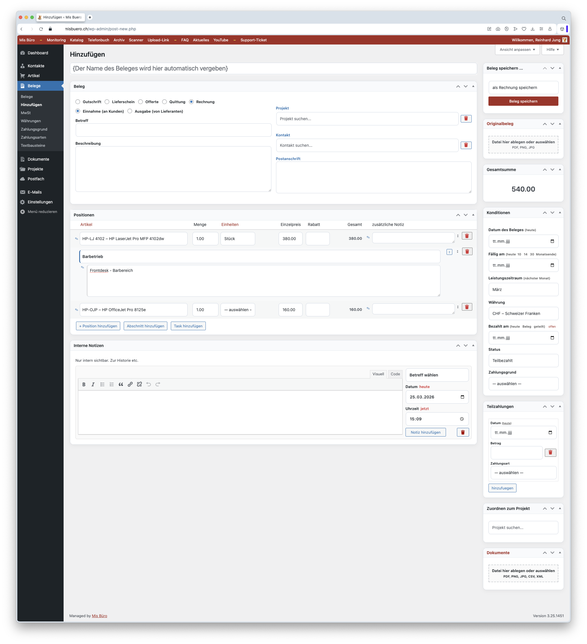 Rechnungen, Offerten und Belege in einem Tool.