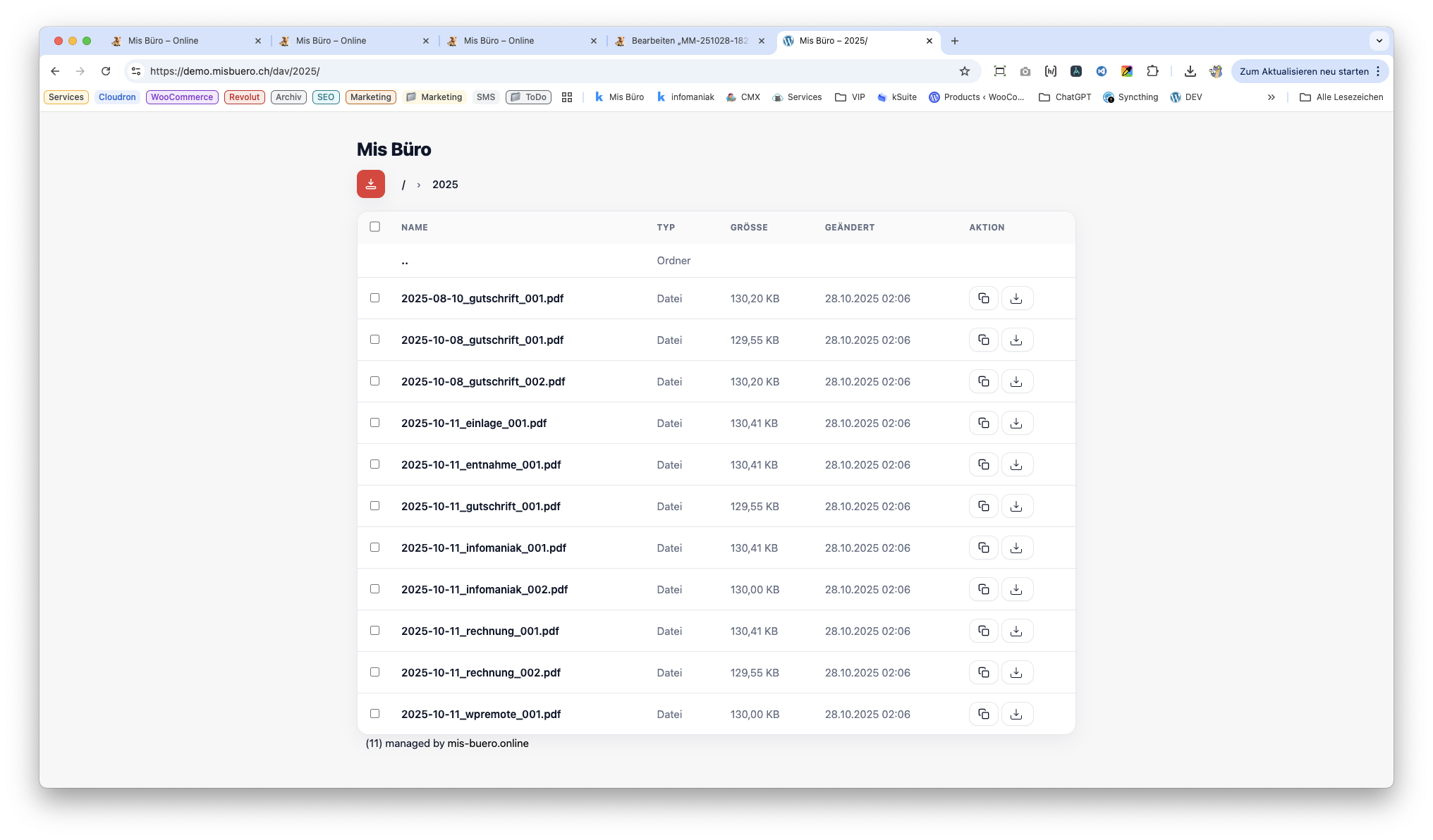 Du behältst jederzeit die volle Kontrolle über Deine Daten. Mis Büro kann auf Deinem eigenen Server betrieben werden oder als komfortables Abo mit Hosting in der Schweiz, inklusive Updates und Support.
